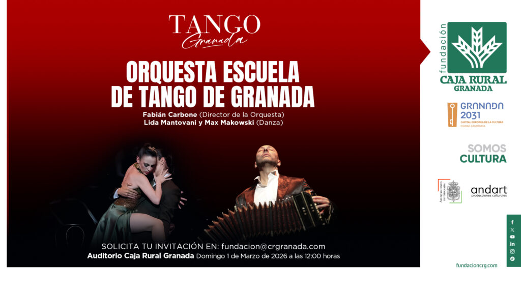 En su intervención, Servián destacó que, “en Fundación Caja Rural estamos muy ilusionados con esta iniciativa conjunta con el Ayuntamiento de Granada y Andart Producciones Culturales”. “Llevamos diez años apostando por el tango y ofreciendo en nuestro auditorio un espectáculo gratuito que ya es un clásico. Este 1 de marzo será una cita especial, con el debut de la Orquesta Escuela de Tango de Granada, dirigida por Fabián Carbone, un proyecto necesario para mantener vivo el tango en la ciudad y asegurar su relevo generacional”, ha añadido.