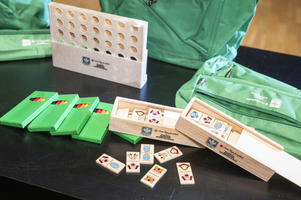 La colaboración incluye también la entrega de un conjunto de juegos y materiales que los niños y niñas pueden utilizar dentro del hospital —incluso en sus habitaciones cuando el aula está cerrada— y que después pueden llevarse a casa una vez reciben el alta.