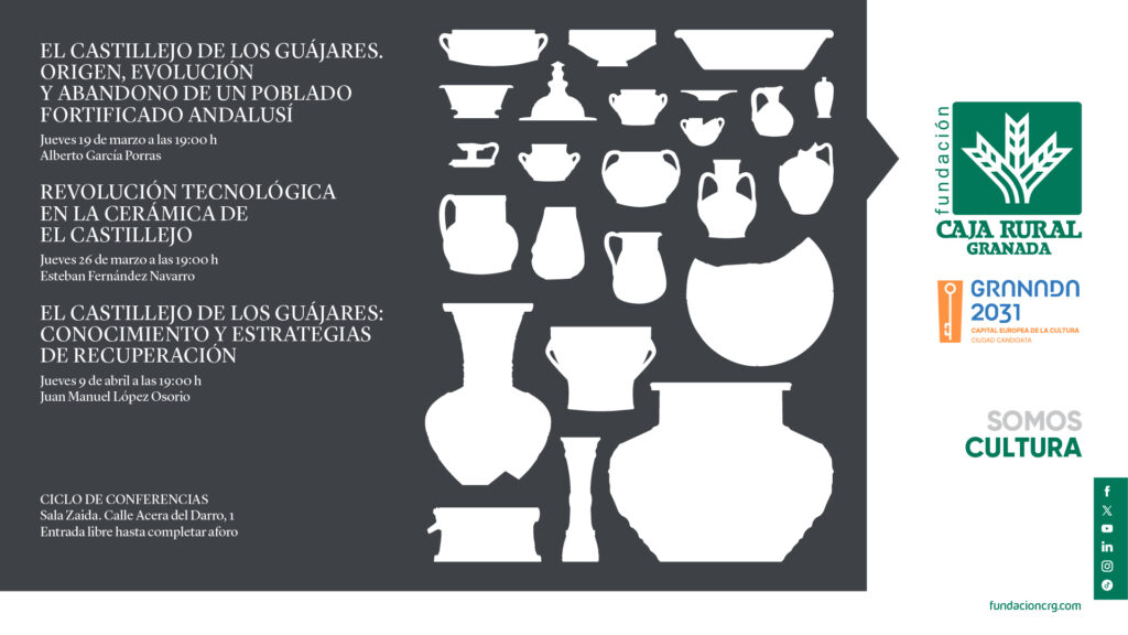 Fundación Caja Rural Granada y la Universidad de Granada organizan un ciclo de conferencias en torno a la exposición ‘Vivir en una alquería de Al‑Ándalus. El Castillejo de Los Guájares’, disponible en la Sala Zaida hasta el 11 de abril. Estas charlas permitirán a los asistentes adentrarse en la exposición y conocer de primera mano el origen, la evolución, la actividad artesanal y estrategias de recuperación de este poblado fortificado andalusí, considerado uno de los asentamientos rurales medievales mejor conservados del antiguo Reino de Granada.