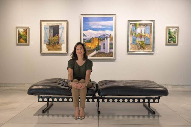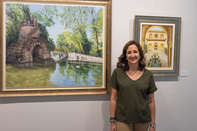 La exposición exhibe óleos y acuarelas, que en palabras del poeta y novelista Pedro J. Marín Galiano, “emergen como aire en movimiento, susurro del río, piedras que conversan o murmullo entre las hojas”.